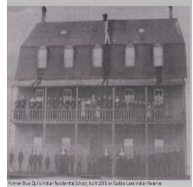 The residential school was first located in Lac La Biche at the Notre Dame Mission from 1891-1898. The building was then moved to the Saddle Lake location in 1898, which was known as the Blue Quills reserve at the time, according to Redcrow.