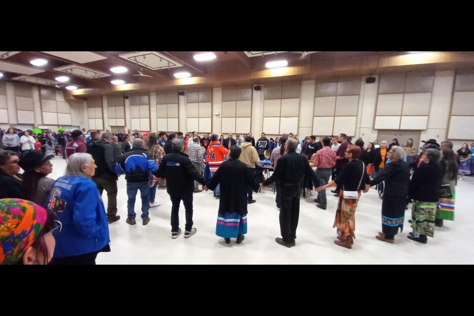 The Acimowin Opaspiw Society hosted the round dance at the St. Paul Rec. Centre as a way to honour all survivors of the residential school system. There were over 100 survivors in attendance at the round dance, with the event reaching capacity at times throughout the evening.
